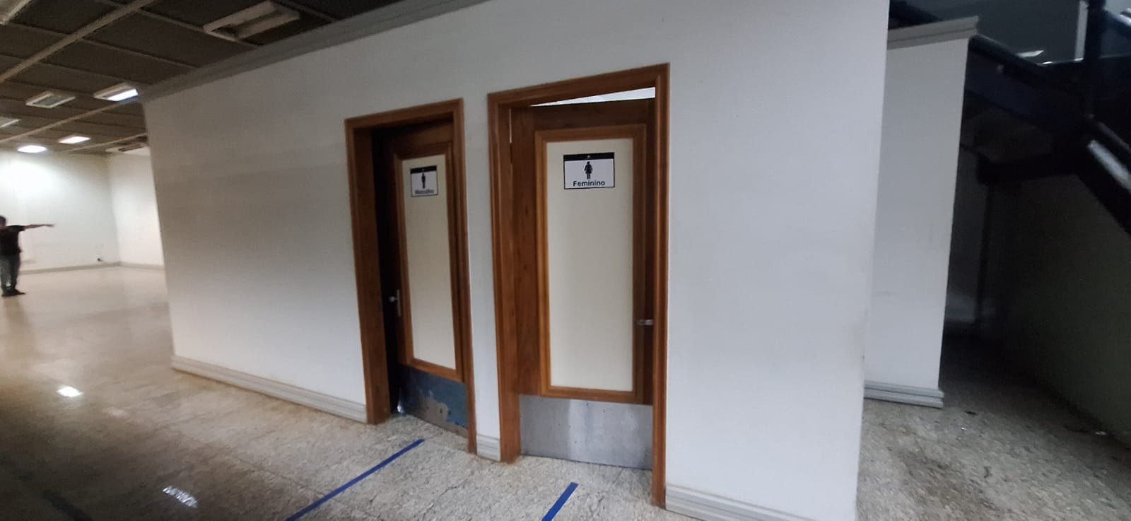 São 3 andares sendo um subsolo com 45 vagas de garagem, o térreo com 1500m² e o segundo pavimento com 1500m². 4 banheiros (2 masculinos e 2 femininos). Gerador próprio, área de cofre.